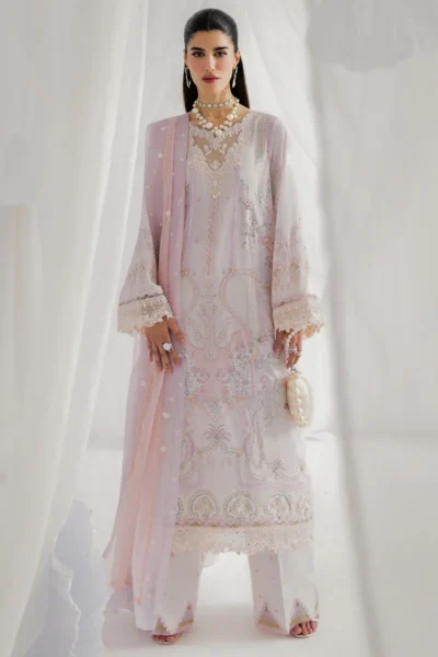 Qalamkar Qline Embroidered Linen || KL-07 WHISPER