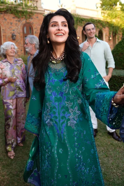 Mahira Khan Manaram Luxury Lawn’25 by Mushq | Tranquil Spark
