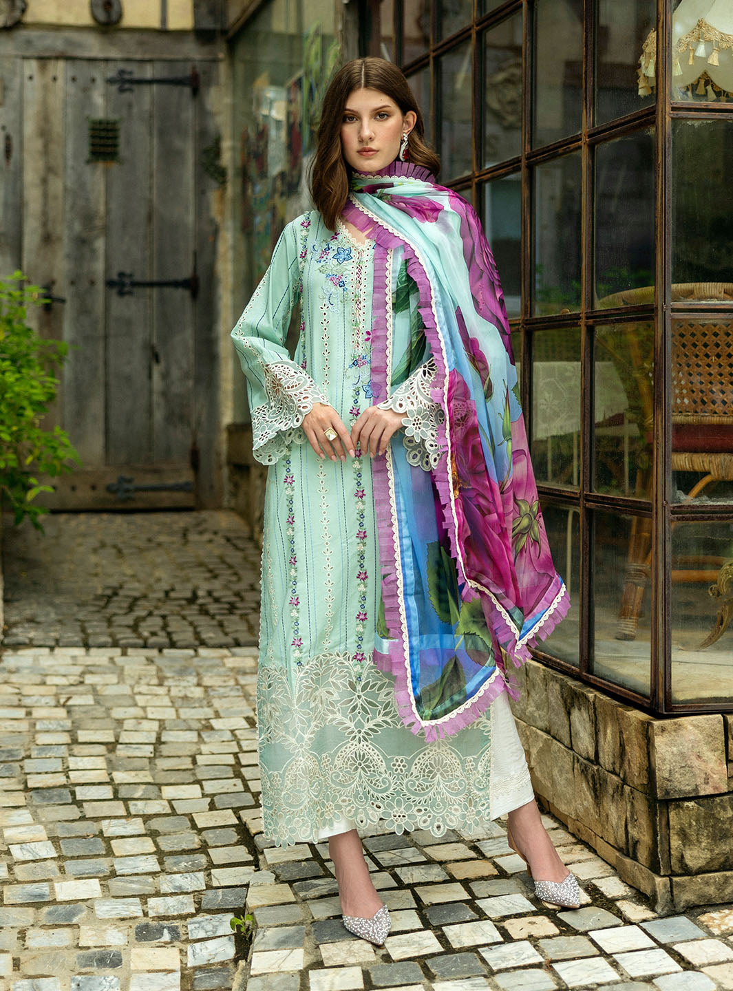 Chikan Embroidered Lawn Front