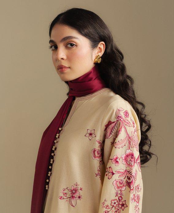 A soft vanilla khaddar shirt and trouser paired with a scarlet