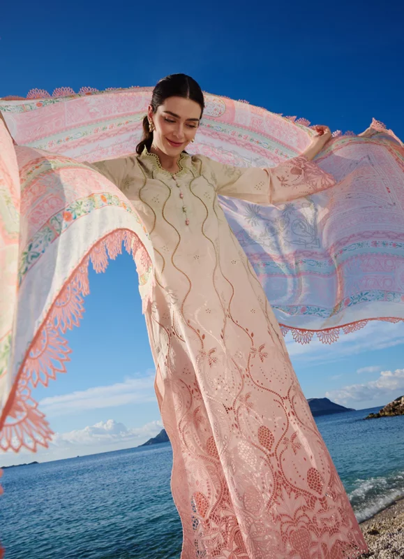 Dahlia in Shaded from our Lawnkari ’25 Collection. A cutwork embroidered cotton lawn 3-piece outfit paired with digital printed chiffon dupatta.