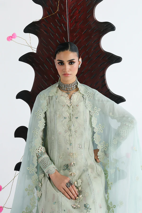 Embroidered front+back daman lace on (organza)