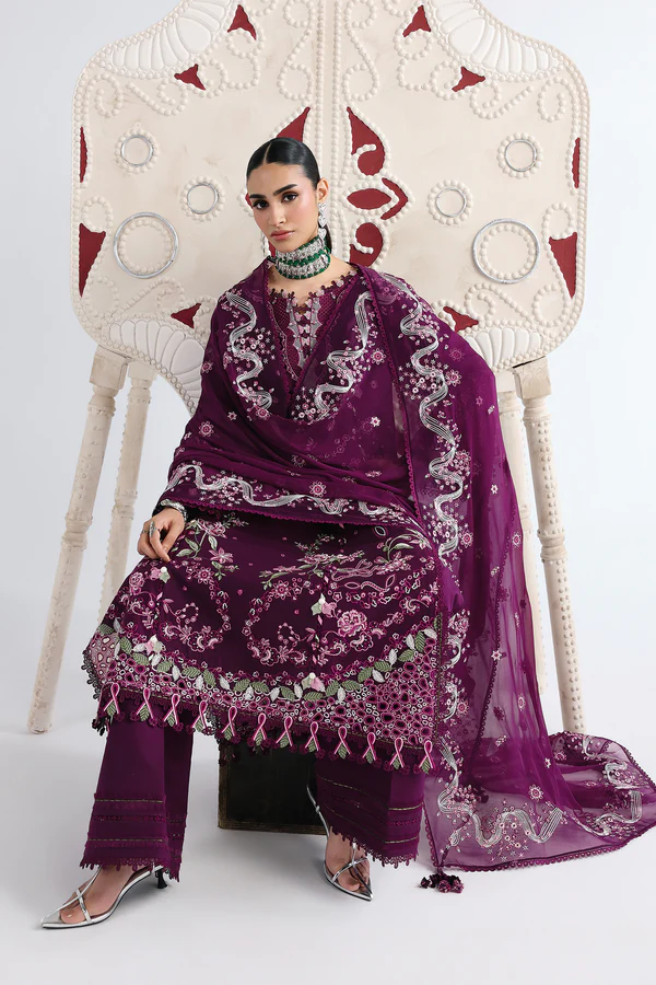 Embroidered front+back daman on (organza)