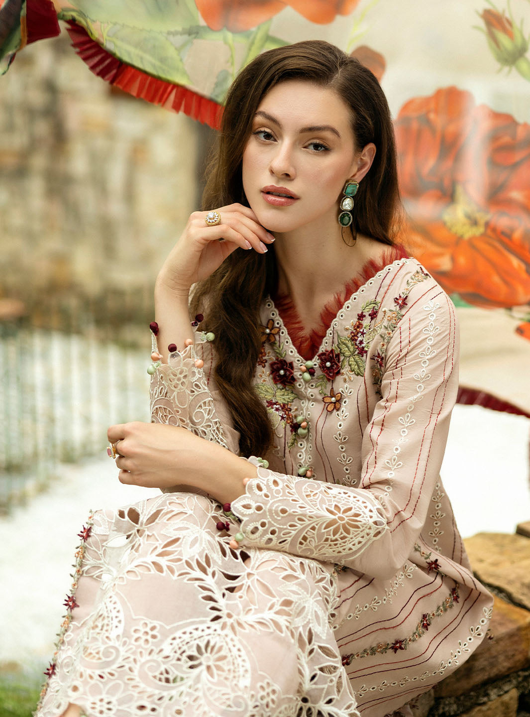 Chikan Embroidered Lawn Front